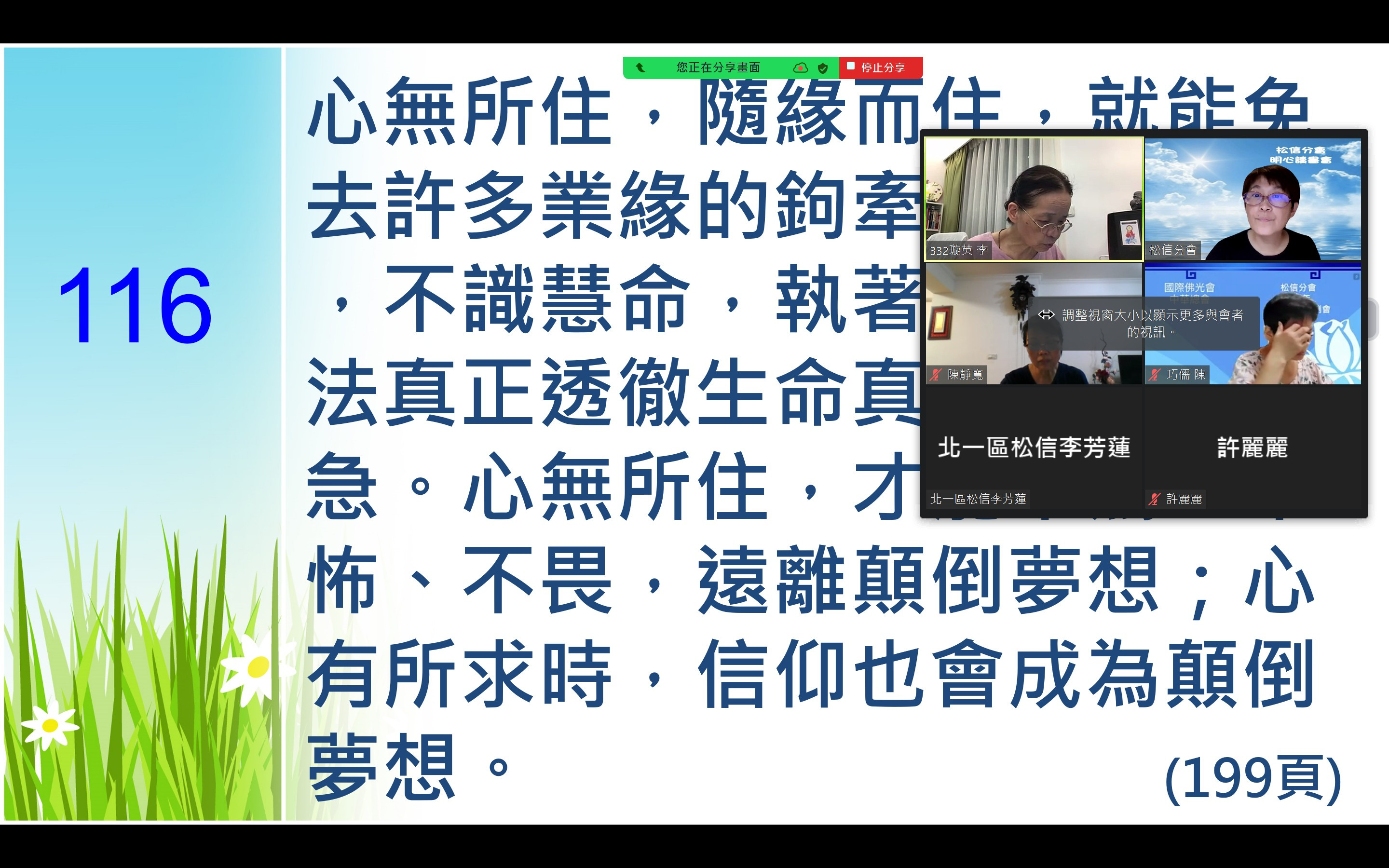 是一種享受,《深入經藏》更是讓眾生親嚐醍醐法味的最佳管道.在與讀書會友們交流討論中,開拓佛法的向度.人生有了佛法就能祥和自在,社會有了佛法就能尊重包容,世界有了佛法才能和平無爭。