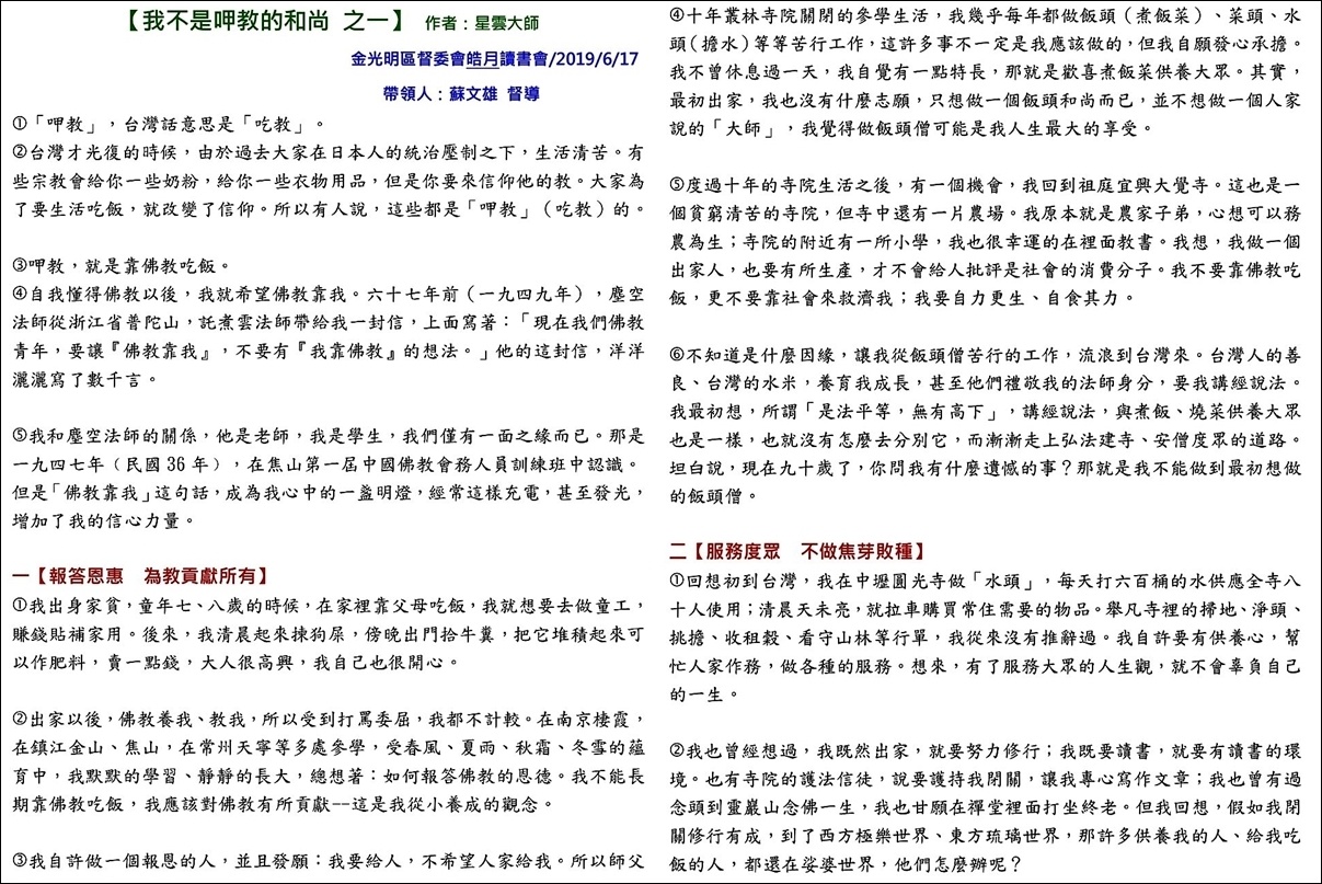 是一種享受,《深入經藏》更是讓眾生親嚐醍醐法味的最佳管道.在與讀書會友們交流討論中,開拓佛法的向度.人生有了佛法就能祥和自在,社會有了佛法就能尊重包容,世界有了佛法才能和平無爭。