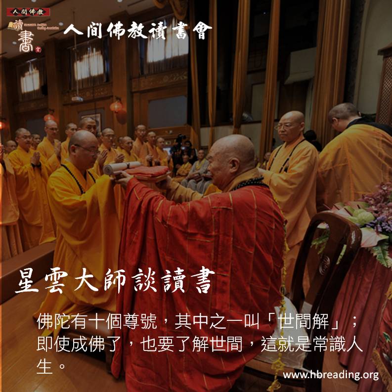 佛陀有十個尊號,其中之一叫「世間解」;即使成佛了,也要了解世間,這就是常識人生。